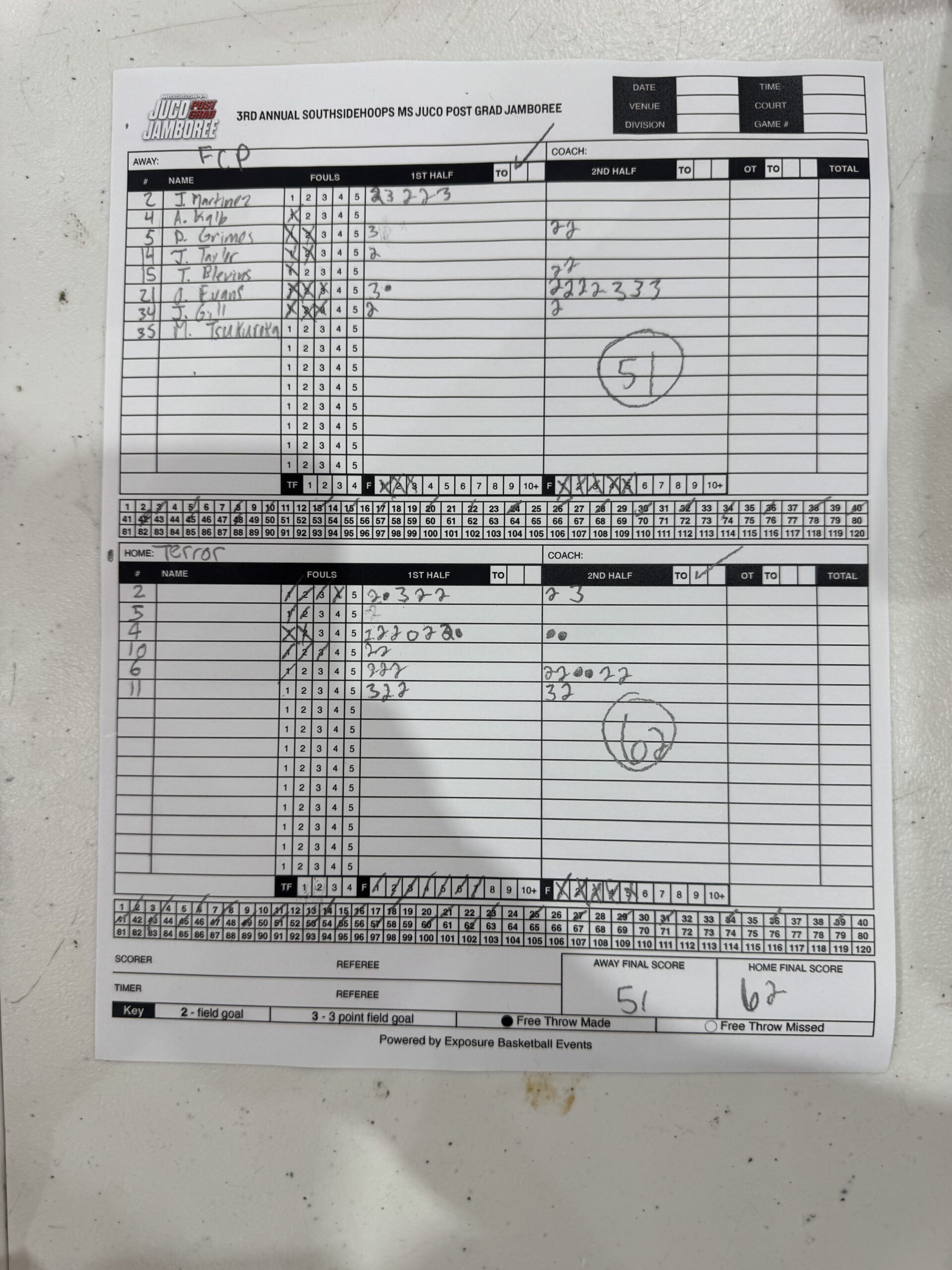 | 12 | Oct 5, 25 | vs Sunrise Elite hs L | Film | Stats | Score sheet |
