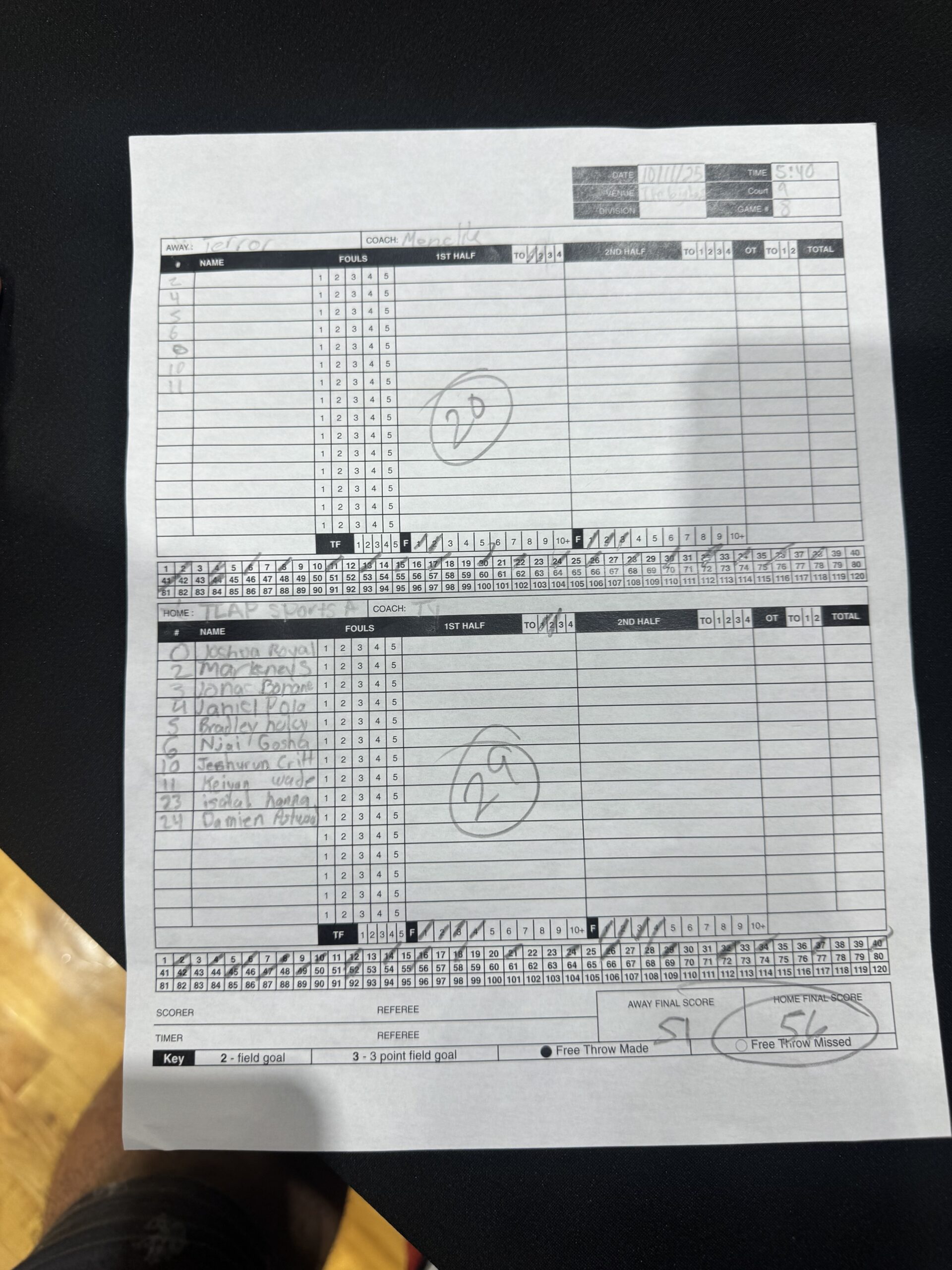 | 5 | Sept 27, 25 | vs Erie Prep post grad L 48-50 | Film | stats | Score sheet |